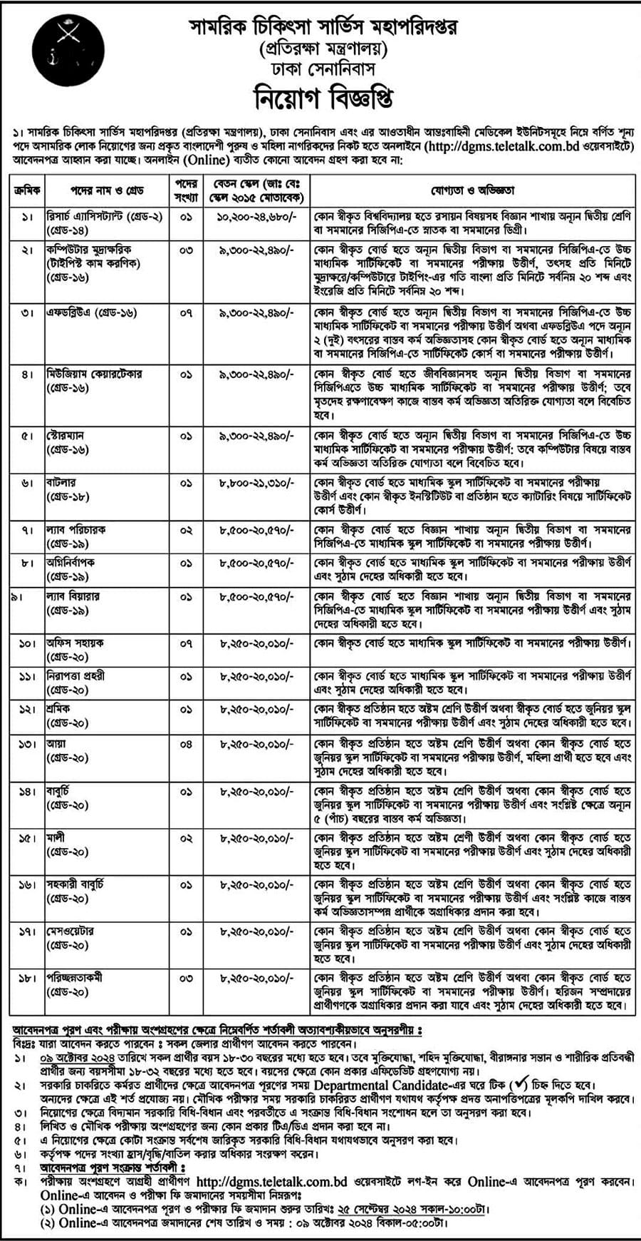■ How to Apply: Apply Online [https:// dgms.teletalk.com.bd/]